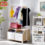 ハンガーラック 引き出し付き おしゃれ 子供 キッズ 木製 スリム 幅75cm