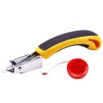 ・ステープルリムーバー ・セット内容:ステープルリムーバー×1点、メジャー付き ・サイズ:長さ15.5cm 幅2.7cm ステーブル先端長さ4.5cm 対応針:U型、コ型、T型など ・材質:ステーブル先端部/炭素鋼 ハンドル部/エラストマー 重量:85g カラー:イエロー ・タッカーのステープルやホチキスの針をテコの原理で楽に外すことができます。ソファーや椅子の・・・